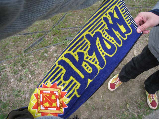風呂に入ったら腕や肩に擦り傷があってヒリヒリとしみる。いや、よく見ると右足のふくらはぎに青あざが。というか右肩の関節が痛いんですけど。 サッカーを観に行っただけのはずが、何ゆえに殴る蹴るの暴行を受けたような体で帰って来たのだろうか。北九州は恐ろしい街である。 まぁそれだけ先日の雄大のゴールは一時とはいえ溜飲を下げる気持ちのええゴールだったワケです。ゴールが決まった時、一瞬、「二点差が一点差になっただけだから自重しよう」、という空気は確かにあった。が、3秒ぐらいしかもたなかったね。仕方ないね。 僕は去年末からバックスタンドの最後方、或いは真ん中やや後ろ気味に立ち位置を取っとるんですが、なんか気がついたら前に居て、誰かに掴みかかったり誰かに引き摺られたりしてました。 この一矢報いる感覚は最高にハイになれる。確かに勝利は欲しいが、今は1ゴールの重みと価値を感じられる時なのかも知れない。結果はこの積み重ねの上にしかないような気がする。 もちろん勝利は欲しいけれども、僕がこのチームに求めるのはどこぞのビッグクラブのような勝って当たり前的な空気ではなく、同じ土地、文化の中にいる人達で大きな勝負をモノにする快感、手応えみたいなものだったりするわけです。 これは個人的な考えですが、北九州は大きなクラブにはなれないだろうし、なる必要もないと思っています。 先日の試合後、小野信義・藤吉信次両名の引退セレモニーがありましたが、その中で、指導者としての人生をスタートさせた小野信義氏が「自分が育てた子供達がいつか・・・」とか、「地元の子供達がギラヴァンツに入りたいと思えるような・・・」といったコメントをされていたが、このローカルな感じでありながらも、先を見据えた視点をとても頼もしく思ったものです。 このチームがこの地域の「文化」になればいいなぁと言うのが僕の本音ですかねー。何を言おうとしていたのか自分でも判らなくなってきたのでこの辺でやめておきます。 要は、今は一つ一つのファインプレーやゴールを味わえる時期なんだな、とかそういう事です。初勝利の瞬間を観たいですね。その時は必ず来る。それは21日のヴェルディ戦かも知れない。 ちなみに、このブログはギラヴァンツ北九州に興味を持ち始めた人達を念頭に置いて書いていきたいと思うております。最近、何のために、誰のためにブログやってるんだろうなんて考えたりもしてたもんで、初心に帰ろうかなと。 画像は今季発売の新しいタオルマフラー。漢字で「北九州」ってのはいいね!ちゅーか、何種類かある中で、この漢字のタオルマフラーが一番売れてたんじゃないかな?このローカル臭がたまらなく良いわぁ。 いつまでも「ニューウェーブ北九州」のタオルマフラーをしてるワケにもいかんので、この新しいタオルマフラーを早速購入。 今はまだ新品臭がするけど、シーズンが終わる頃には僕の汗とよだれと鼻水が染み込んで、ええ感じにほぐれている事だろう。僕の新しい相棒です。 |