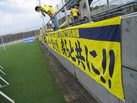 画像は鳥取戦前の設営中のひとコマ。現在、アウェーでしか見ることが出来ない貴重な横断幕を激撮。ピッチに降りて撮影したように見えて全く降りてなかったりする。 久し振りに友人と小倉に行きました。京築方面には映画館がないので小倉に出なきゃならんです。 チャチャで職場の同僚とばったり遭遇。小倉は大きな街ですが意外に狭いのかなと思う時がありますね。どこへ行っても誰かに遭遇する可能性を感じる。京築地域の友人、小倉で働いていた時の同僚、、その他諸々、ばったり出会って「おお、なんしよん」とお決まりの挨拶。本当によくある。 小倉の雑踏の中で思う。誰もが誰かとどこかで繋がっている。 すれ違う人達の何人かは必ずNWを知っている。観に来たことがあるかも知れない。 今、通り過ぎた眼鏡の兄さん、僕と目が合った小学生の男の子、いや、意外に子連れのママさんも観に来てるかも知れん。行き交う車の中にもいるかも知れないね。 何気にこのブログを知っている人もいるかな。いるといいな。 友人と話しながらそんなことをふと考えている。 このブログに迷い込んだ人達にNWに対する興味を少なからず抱いてもらえるようにやろう。 どこかですれ違ってる人達、やがてはホームで出会うかもしれない人達に。 試合に負けた悔しさで余計な鬱憤をさらしてしまいそうな時は、また苅田の山に駆け登って両手一杯に地元を感じてみるか。右手の指先の門司から、目の前の皿倉山と平尾台を胸に、左手の指先の豊前まで。 サッカーに、というかスポーツ観戦自体に興味のない友人が「まだナントカってサッカーチームを応援しとるの?」と尋ねてくる。「まだ?まだ始まったばっかりやないか」と笑って答えた夏の休日。 今日、鳥取が岡山に勝ったようですな。「鳥取がこれで息を吹き返したかも知れん」という先の試合後の我々の予感は当たっていたのでしょうか。ともあれ混戦必死の様相を呈してきましたが、これは北九州としては望むところですね。この花火の中に飛び込む為にはこれ以上の後退は許されません。 明日8月3日(日)、15:00より、北九州絶対防衛拠点「鞘ヶ谷」にて秋田の雄、TDK SCを迎撃します。 僕は仕事の都合で行けませんが、相も変わらず仲間達は熱くやってくれることでしょう。 そして「あのゴールは凄かった」と自慢し僕を歯軋りさせることを望んでいます。 噂によると魂と魂をぶつけ合うモッシュ選手権が予定されているとの事。 「Time to dive into the fireworks! 」 by Larry Foulke PR |