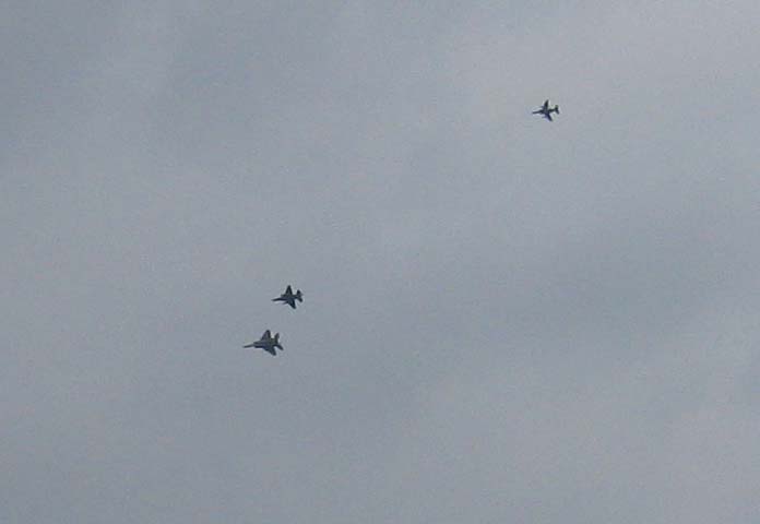 航空自衛隊築城基地は築上郡を中心に行橋市と京都(みやこ)郡にまたがる北部九州の防衛の要となる基地。北九州空港の航空管制も請け負っているようでまさに北九州の空の番人である。 夜中にスクランブルと思われる爆音が聞こえてくると、「また韓国のクソ戦闘機が対馬に近づいてやがるな」と。ケツ蹴り上げて追い返してやれと思う。 画像は昨日の午後に部屋の窓から撮影したもの。例の墜落事故以来、久し振りに編隊飛行を見た気がする。 F-15とF-2という異機種のペアにT-4が随伴するという稀な編成。これは写真撮影しているのかな。 あまり詳しくはないんですが、F-15とF-2が同じ基地に配属されているのは築城と岐阜だけだそうです。 僕のちゃちなデジカメだと小さく見えますが、肉眼でもエアインテイクの形が判るほど低空で飛んでます。いつも頭の上を飛んでいる飛行機が墜ちたあの事故は衝撃的だった。そして寂しくもあったよ。 最近、築城基地と築上町の関係がギクシャクしていて心配。以前の基地拡張問題に引き続き、今回は築上町議会が訓練自粛の要望書を提出したとか。で、よりにもよってその翌日に訓練を再開してまた揉めたとか。仲良くしようよ、持ちつ持たれつなんだからさー、と小市民の僕は思うワケです。 来月は京築で最も人が集まるイベント、航空祭があるのに大丈夫なんだろうか。仲直りの切欠にしてね。 話は変わって今日、所用で図書館に行ったら前の駐車場の横で何やらイベントやってました。 むむっ?これは以前ブログにも書いた「神籠石カレー」ではないか!?今日が発売日やったとは。僕のアンテナも低くなったものだなぁ。売り子の姉さんがどうぞどうぞと招くので遠慮なく試食。うむ、美味いやないか。ごっつな豚肉が思った以上に良いぞ。もう少しルーの濃度が高い方がいいけど、これはこれで悪くない。 てなわけで、ちょっと割高やったが二つ(四食分)買ったよ。帰って来て調べたら確かに記事が出ちょりました。『新名物!? 神籠石カレー』 図書館前の商工会議所で販売されているそうです。 さて、NW北九州、いよいよ明日JFL再開。連携は向上しただろうか?ファッキンサポーターズは相変わらずハイテンションのままだろうか?いろいろ確かめたい事だらけですが僕は朝からキツイ・汚い・ある意味危険のKKAKの仕事に従事しております。 すでに今からテンションが低くて困る。帰って来るのは早くて18時ぐらい。僕がいない時ほど劇的な展開が起こるので楽しみに待ってますシクシク。 熱きマイハートは常に同志諸兄らと共に戦場に在り。 試合開始時刻、平尾台の方角に向かって敬礼す。そして心の中でこう問いかける。 「本城は燃えているか?」 選手達や本城に集う仲間達がその答えを知っている。 |