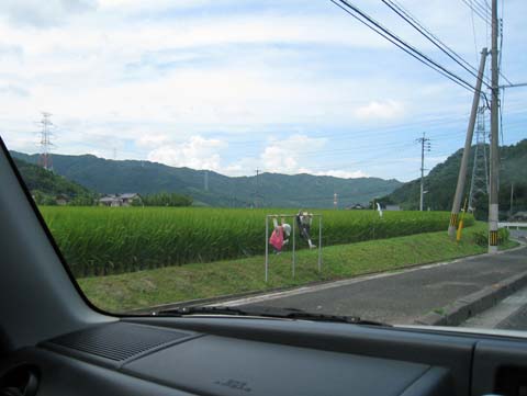 その昔、友人と連れ立って阿蘇へ行った帰り、大人しく中津経由で帰ればよいものを、地図上のショートカットである英彦山の脇を通リ抜ける496号線ルートで帰ろうという話になった。 時刻は深夜0時過ぎ。この時間帯の英彦山近辺は漆黒の闇、何も見えなさ過ぎて逆に見えてはいけないものが見えてしまいそうな、本当の闇。ヘッドライトに照らし出される範囲だけの世界。 途中、行橋方面と豊前方面ルートに分岐するが築城の友人を送り届ける為に豊前方面へ。山を降りたと思ったら登り始め、奥深くに足を踏み込んでいるという感覚に不安が募る。 友人達はこのルートを選択した事を既に後悔している。ハンドルを握る我輩は車中のドン引きの空気を変えようと「俺は平尾台のイニシャルT、英彦山如き屁の突っ張りもいらんですよ」と小粋なジョークを飛ばして見せるがスベリ倒しである。 一部マニアに有名な(つーかソメザイル氏が何故か知っていた)チンコ岩の近くを通過し、ようやく平地に降り立って一息ついた頃、ヘッドライトに浮かび上がった異様な光景・・・。 それは深夜1時にもなろうかという時間に遊んでいる子供達の姿。 「なんじゃアレ!?」「キモイ!」「コワイ!」と車中は大盛り上がり。 最高に楽しい京築の夜だった。 さて、この「子供達」、動かないのである。 何の事はない、地元の自治体が作った「かかし」である。 使わなくなった子供の服を利用した手作り作品なのだが、かかしにこれだけのクオリティは必要か?と思う程、生々しい、いやリアルなかかしなのだ。 この辺りは過疎化が進んでおり、小・中学校が次々と閉校していった地域で子供達が遊んでいる姿を見かける事はほとんどない。その寂しさを紛らわしたいが為のこのリアルさなのだろうか。 「ねぇ、ちょっと」と呼びかけると「なぁに?」と顔を上げてきそうな程のクオリティである。 さすがの僕も顔を覗き込む事は出来なかった。いや怖いんで。 この一箇所だけではなく、200Mぐらいに渡って道路沿いのそこかしこで彼らは遊んでいる。 京築トワイライトゾーン、そこには減っていく子供達の姿を懐かしむ大人たちの悲しくも優しい物語があったのだ。 終わり。 NWネタはないっす。すんません。 |