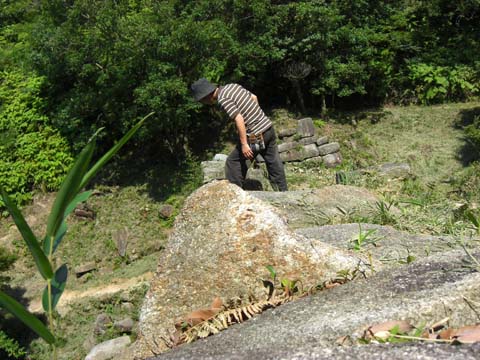福岡県行橋市の端っこ(と言ってもウチから車で5分ちょっとなんですが)にある国指定史跡の御所ヶ谷神籠石(ごしょがたにこうごいし)。 前も行ったんですが暇つぶしにまた行ってきました。 神籠石は九州北部から瀬戸内海沿岸に点在する謎の遺跡であります。 一応、行橋の神籠石は城壁や城門跡、貯水池などから「山城」と見られているようです。 663年に朝鮮半島の白村江の戦いに大敗した後、大陸からの侵攻を防ぐ為に大宰府に水城を築いたのはよく知られているかと思います。御所ヶ谷神籠石も水城と同時代に建設されたとされています。 博多が攻め込まれたら大宰府で迎撃というのが古代からの鉄板戦略であるように、小倉がやられたら京築で迎え撃つというのも実は定石の一つであります。 「車で5分のところにそんな遺跡があるなんてどんだけ田舎なん」というふざけたツッコミを蹴散らしながら御所ヶ岳の入り口まで車で登って行きましょう。 車を降りたらハイキングタイム。 足元で繰り広げられる食物連鎖を見て見ぬ振りをしつつ、道なき道を登ります。 5分もせんうちに息が切れ、足が重力を感じ始めますね。 お上はこのエリアをハイキングコースにしたいようですが無理。とても談笑しながら歩ける山道ではございません。 初めて来た時は調子こいてサンダルで来てどえらい目に遭っていたので今回はちゃんとスニーカー装備、余裕だぜ・・・。 中門です。「御所ヶ谷神籠石」をネットで検索すると大抵この角度からの写真が出てきます。 一所懸命に造ったにも関わらず、結局、大陸のヘタレどもは日本に上陸せず、結局、この山城計画も城壁と城門を築いた時点で放置されちゃった模様。 完成しておればもっとメジャーな史跡になれたものを・・・。 ちょうどここです。 城壁の上に立ってみると何故ここに山城を築いたか判るような気がしますね。 普通に苅田辺りまで見える。見通しの良い日なら朽網まで見えそうです。 小倉を占領して南下を始めれば平尾台を迂回して進む軍勢の動きが丸見え。 戦略的要衝というのがよく判ります。古代人、やりおるな。 神籠石のさらに上に登ると神社があり、その裏に建物跡がありました。 恐らく見張りか現場監督が寝泊りした小屋ではないかと想像。 建物跡には小さな祠が建てられていて、中にはお賽銭が。 僕も祖先を称える意味で入れておいたのは秘密だ・・。 日本人は何かこう、神聖な場所というか「神さま」が居そうだと感じた場所には何故かお賽銭を置く習慣がありますね。 それが普通の池であったり、木であったりする場合もあるから凄い。最初になんとなーく神聖だと感じた人が置いて、その後に神聖さを感じた人が次々と置いていくんだろうな、と。 誰かが強制したわけでもないのに自然とそこが神域になっていく、日本人のこういう感性は大事にしたいなぁと思うのであります。 昔、「日本は神の国である」と発言してブッ叩かれていた政治家がいましたが、その言葉の使い方の正誤は別として、僕はやっぱり日本はそこら中に「神さま」がいる国であり、そう在り続けるべきだと思うのですがいかが。 ところで全国の関係自治体が神籠石をもっとアピールしようと協力して「神籠石サミット」というのを開くそうです。 第三回サミットは10月にここ行橋で開かれ、「神籠石カレー」なる珍商品を出す計画だそうです。何故にカレーかなどと野暮なツッコミはなしで市販されたら買いますけ。 いかがでしたが、第一回京築探検隊。読まない人は読まないでしょうが、隙を見てまたやります。 その内、団長の「くわがたブログ」やOGYさんの「ラーメンブログ」を上回る脱線振りを見せたいと思っております。 PR |