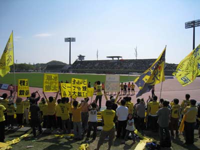 17時半には帰宅したんですが、早起きがたたってそのまま寝てしまいました。目が覚めた時、『いやぁ、本陸が人でいっぱいになった夢をみたなぁ』と一瞬だけ寝ボケましたね。 300人とか500人とか、或いは去年の1000人とか・・・見慣れた本陸の光景とはかけ離れていたからさ・・・。 でも雰囲気というか、本陸らしさというか、僕が初めて本城にNWの試合を観に来た時に感じたあの圧倒的な親近感や一体感というものを今日初めて来られた人達は感じてくれただろうか。それだけが本当に気掛かり。 僕自身、観客の多さにどうコミュニケーションをとったら良いのかサッパリでした。とりあえず試合前に挨拶をしながらコール集のビラを配ったりしたけども、それだけで親近感や一体感を感じてもらえたとも思えないし。何かこう自分自身が空回りしている感じだったなぁ。 JFL第一節 ニューウェーブ北九州 0-0 ジェフリザーブズ ぐはぁ・・・大事な見せ場でやっちまったな・・・。負けたわけじゃないんだけども、このやっちまった感が今日の全てかな・・・。ただ今日は自分も不甲斐なかったもんで、あんまりアレコレ言う気がしないんす。 選手達もチンタラやっていたわけではなくて、いろいろやろうとしていたのは判った。得意の中盤でのパスワークで相手を揺さぶろうとするんだが、どこか歯車がズレていた感じ。 守備は悪くなかったし、惜しいシュートもたくさんあったんだがなぁ。こういう時もあるよなってのが選りにも選って今日だった。 試合終了後、ぞろぞろと立ち上がって本陸を後にする人の波に、『いや、このチームの本当の力はこんなもんじゃないから!』と叫びたかったが、多分、選手達が一番それを言いたかったはずだ。 今日のこの「やっちまった感」は選手・スタッフ・常連サポーター全員が少なからず感じてしまったはずで、次は本当の姿を見せてやろうよ、としか言いようがない。 集客自体は成功でしたが、試合自体が凡戦になってしまったので今日の約一万人の中で何人の人達が次も観に来ようと思って頂けたかは判りませんけどもね・・・。旅は始まったばかりなのでいくらでも取り返せますよ。ちゅーか取り返そうマジで。 それにしてもこの人の入りである。試合が始まってもまだ入ってて、ハーフタイム時にはご覧の有様だよ!ってな感じです。 バックスタンドからメインスタンドから、ゴール裏から、全方位が人で埋まる光景にただただ呆然。 いや、呆然としちゃいかんけども。 個人的にはトラブルらしいトラブルは見なかったけど、やはりこれだけ人がいると見えないところで何かあったのではないかと心配はありますね。 案内板や表示板はもう少し増やすべきかなぁ。常連ばかりじゃないんだし、本陸自体が初めての人もいただろうし。僕自身も慣れてしまってて気付かない部分もあったけども、ホームの観客が本陸で右往左往するという状況は最小限に抑えたい。 それと直接見たわけではないけど喫煙場所以外でタバコを吸っている人とかもいたらしい。喫煙場所を知らないんだろうなと。ただ喫煙所も人込みが凄かったが。 今日は僕自身のアドリブの利かなさ、盛り上げるアイデアの無さに軽くへコんだもんであーだこーだと書く気がしませんけども。今日来られた約一万人のほとんどが『受身のエンターテイメント』で終わってしまったのではないかと思う部分あり、ある程度はベタな事でもやった方がいいかなとか、まぁいろいろ考えてます。 ちゅーか有志集めて飲み会という名の話し合いをしたいですね・・・今はそんな気分です。 今日、ゲーフラやら横断幕やらの新作が大量にお目見え。かっこいいセンスのものあり、遊び心のあるものあり、どれも作り手の個性があって素晴らしい! 口達者なだけで何のセンスもない僕には思いもしないアイデアがあって見てるだけで面白い。 ハーフタイム時に一般のお客さんの中から「あのダンマクが可愛い」という声が聞こえた。どれのことを言っていたのかはわかりませんが、これかな。シンプルだがアイデアがキラリと光る一品ではないかと。 今日は勝利という結果は得られませんでしたが、北九州の可能性と底力を感じられた事が収穫だろうか。去年、このブログで一度だけ我々は孤独であると嘆いた記憶がありますが、今は違う。我々は孤独ではない。 繋げて拡げて輪になって、北九州一丸でJを目指すのみ。 同じ気持ちの人達と共にあらゆる艱難辛苦を乗り越えて、その先にある最高のクライマックスへと続く長い旅の始まりです。 |