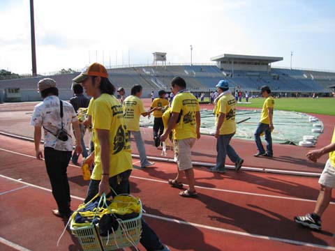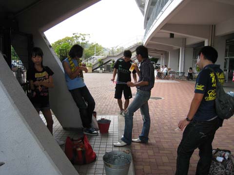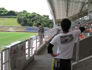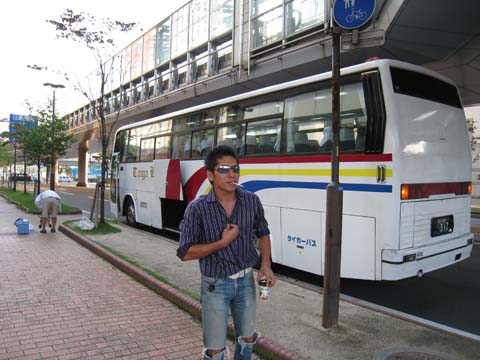 朝5時に起床、5時半に行橋を出発。6時10分頃には小倉駅に着いてたりして。特に飛ばした覚えはないのですが早朝だとこれぐらいで着くんです。 駅前のコンビニでパンとコーヒーを買い腹ごしらえをする。栄えある一番乗りであるが無論、誰も褒めてはくれない。 6時半頃にタイガーバスと書かれた大型バスが到着。さらに日系ブラジル人サポーターのブルーノ・Y・ソメオカ氏が「サポーターズTV!」とお馴染みのポーズを取りながら登場。 そそくさと荷物を詰め込んでいると四天王総帥がジョージ監督の物真似をしながら登場。今日はみんなノリが違うぜとバスの写真を撮ろうとすると、頼んでもいないのにブルーノ氏が唐突に服を脱ごうとされる。 「チ○ポも乳首も出さなくていいですから」と先に言うと軽く舌打ちをされたが背に腹は代えられん。 ブルーノ氏はシャツのボタンを留めながら「そんなことだからパラさんがブチぎれるんですよ」と不穏な事を言われる。驚いて何が原因ですかと尋ねるとどうやら当ブログが発端らしい。心当たりがないと言うより、心当たりがありすぎてどれがトリガーか逆に判らない。 七時前には小倉組は全員集合、定刻通り出発。小倉組よりさらにヨゴレ度が高いと言われる黒埼組を拾う。 レジェンド・オブ・北九州ことパラッカム様がバスに乗るなり「思わぬ所から情報が漏れるものよ。」と怒り心頭に達しておられるご様子。これはハードな旅になりそうだぜ。 そしてたった一人を拾う為に須恵に向かう。 須恵ではOGYさんが迷子の子犬のような不安気な表情で待っておられた。僕が車内で「北九州のジャン・レノと呼ばれるOGYさん」と紹介するが「それは賛同しかねる」といった空気が漂う。もう二度と言うまい。 こうして滞りなく全員集合、いつもの本陸メンバーがほとんどでしたが何人か新しい人もおられる。 須恵を出たところで団長が強奪してきた選手グッズの争奪じゃんけん大会が開かれました。 個人的な経験上、新しい人達に優先的にゲットして頂きたかったが、空気を読めない常連組が次々と獲得していく。 これはいかん、新しい人達が取り残されてしまうと考えていると団長も同じ事を思っておられるようで、僕にアイコンタクトで「タ○チよ、やつらの妨害をせよ」と指令を出される。了解です団長と言わんばかりに僕も参戦。 すると、あれよあれよと勝ち進んでジョージ監督の使い込んだTシャツをゲットしちゃいました。「空気を読め」とマイクで軽くディスられつつの長崎旅でありました。 完 いや、完じゃなくて本題です。画像は試合前に遭遇した元NW選手の山田浩稔。なんか小洒落た感じになってます。 天皇杯二回戦(長崎県総合運動公園陸上競技場) 三菱重工長崎 0-1 ニューウェーブ北九州 負ければそこで終わりの天皇杯、とりあえず勝てばオッケーなんですが、次の仙台戦がかなり心配になる内容ではありました。 最初の10分で今日の勝利は間違いなしと確信したんですが、強くなる日差しに嫌な予感が頭をよぎる。北九は暑くなると目に見えて動きが落ちるからなぁ・・・と思ったらさっそく足が止まり、五分五分の展開に持ち込まれちゃいました。 重工長崎は9番の選手をターゲットに縦の攻撃一本。前半はこの9番の対応に北九のDFが手を焼いた印象でした。まぁ永野選手が文字通り手を使ってましたが・・・。 後半は比較的落ち着いてたようには見えたものの、得点の匂いを感じさせない攻撃面への物足りなさは残りましたね。 ゴールがあるとすればセットプレーからだろうなぁという大方の予想通り、コーナーキックからの押し込みゴールが決勝点。安心した一点ではあったが、ハジケきれない一点でした。贅沢言っちゃいかんけども。 勝ったのは北九州なんですが、むしろホームで恥ずかしくない戦いをしたと胸を張っているように見えた重工長崎の選手達が印象的でした。 それでも印象に残った選手を少し。 #19 古賀宗樹 選手 この頃の試合では一番よく走ってる選手ではなかろうか。以前、シュートがどうのこうのと書いてしまいましたが、この試合ではいいシュートを放ってました。いい突破もあった。 自分に求められているのが何なのかをよく判ってる選手というのはやっぱり目に付きます。 #11 宮川大輔 選手 あの混戦からゴールを決めたのは宮川選手だったのね。この日も力強いプレーが印象的でした。 #27 アラン 選手 初めて観ました。悪くないなぁと思った。佐野-アラン-宮川の連携が向上すれば、かなり良い攻撃の形が作れるようになるのではと。今後に期待大。 #5 桑原裕義 選手 やっと帰ってきた我らがキャプテン。試合勘はまだ本調子ではないようではあるけど、やっぱり安心感がある。あとは日高・シンヤ・加藤・河内の復帰が心底待たれます。 #14 佐野裕哉 選手 膠着状態を打破できる数少ない選手であると再確認。タイ遠征ではケガをしないようにほどほどにやって目立たなくていいよと思っているのは僕だけではあるまい