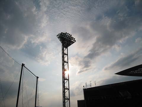 内容は点差ほどの差はなかった・・・と思いたい・・・。ふう・・・。久し振りの観戦ということでつらつらと書き垂れ流しますよ。 ニューウェーブ北九州 0-3 ソニー仙台 朝方、雨が降っておりましたが鞘ヶ谷に着く頃には太陽が顔を覗かせる空模様でした。さすがに日差しに照りつけられるとキツイものを感じましたが、一時期の本城のフライパン蒸し焼き状態に比べれば随分楽な気候であったかと思います。 ソニー仙台の戦い方は至ってシンプル。FW10番の選手にひたすら北九DFの裏を取る飛び出しをさせ、サイドの選手が10番に合わせてボールを放り込む。もうこれだけっちゅー勢いで10番を走らせていた印象。 相手の右SB2番と右サイド7番が非常に良かった・・・というか迎え撃つ我が方の森本選手が本調子ではなかった様子でした。 1失点目は北九左サイドを抜かれ、北九DFラインの裏に飛び込んだ10番に合わせて放り込まれ、きっちり決められてしまう。「オフサイドではないか」という声も上がってましたが、残念ながら僕は10番がラインの裏へ出た瞬間を観てないので何とも言えんです。 相手10番が北九DFラインを随分越えたところでボールを受け取ったのを見てオフサイドだったのかも、と思ったりもしましたが。 ただ非常に加速力のある選手のようで我が方の選手を置き去りにしてブッちぎるシーンを何度も見せられてしまった。こちらの対応も遅かったのかも知れませんが。 2失点目は同じく北九左サイド、森本選手を抜いた相手2番がゴール前へ放り込み、これをクリアーできず相手10番へ。胸で落として後は蹴り込むだけだった。 3失点目は、まぁ終了間際のセットプレーで点を取りに人数かけた結果、カウンターを喰らった形なので、これを責めるのは少し酷かなぁといった印象です。 完敗・・・とは言いたくないが、結果を見ると完敗ですね・・・う~ん。 「宮川のあの鬼ボレーがGK正面でなければ」とか「ドグがあれを押し込んでいれば」とか「日高や桑原がいなかったし」とか、いろいろ自分の中で救いを探してはみたものの、0-3という現実の前にはただただ悲しいだけです。 誰が出てようが出てなかろうが、勝つのも負けるのも「ニューウェーブ北九州」なんです。ちくしょうめ・・・。 あと印象に残ったシーンが一つ。 2点目を取られた辺りだったか、沈滞ムードになった瞬間、「オイ、下を向くな!声出せ!」という檄が響いた。 てっきりメインスタンドの観客の発言だと思い、「メインの連中、なかなか良い声かけするなぁ」と咄嗟に「おお!その通りじゃ!いったれや!」みたいな事を叫んだのですが、どうも永野選手の声だったようです。 実際、今日の北九の選手達はちょっとおとなしかったかな。 「オレが声出してもしょーがねーし」とか思っているのだろうか。それとも声を出すと「お前が言うな」的な空気になるのかな。 よく判りませんけど、永野選手のあの一言は非常に良かったです。少なくとも僕のハートには響いた。 #23 岩切 ケン選手、初陣 さてさて、後半開始から藤吉選手と森本選手に代えて河内選手、そして岩切選手が投入されました。 岩切ケン選手は入団以来初めての公式戦出場になりますか。 開幕前の練習試合で見た時はサイドでプレーしてましたが、今日はボランチですかね。ほぼ中央でプレーしてました。後半、攻勢に出た北九州の中でもよく動き回ってたように思います。 ただ、「岩切、そこでパスではなくシュートを選択するならせめて枠内に打ってくれ」とツッコミたくなるシーンが2度、他の選手がスペースにパスを出そうとするものの、ついボールを受け取りに行き過ぎて岩切選手が通り過ぎたスペースにボールが転がっていったというシーンが2度ありましたが。 しかし、スピードはあるし、パスを出すセンスも悪くはなさそう。フィジカル面は確認できませんでしたが初陣でも気後れせずプレーはできていたかなとは思いました。 今季入団の選手達は即戦力としての入団で、唯一、岩切選手だけが将来性を買われての入団だと僕は思っているのですが、やはりポテンシャルは高いのでは、と。 今日はミスが目立ってしまいましたが、高い技術を持ちながらもすぐに足が止まってしまう小慣れた選手より、事態を打開しようと走り回る姿は好印象でした。まぁ、苦い初陣だったとは思いますが。 試合を観ていた皆さんはどう感じられたでしょうか。 約一ヶ月ぶりの観戦という事で新鮮な目で観れている感じがして嬉しかったのですが、このような結果になって残念です。 久し振りに観る選手達。宮川、貫禄出てきたな。河内のプレーは本当に好みだ。佐野、佐藤、俺達を導いてくれ。永野、下関に住んでる従兄弟に似すぎだぜ。とか何とか思いながら観てました。 「みんな、さらに黒くなったなぁ」とその日焼けっぷりに僕が観てない間の激戦を想像してミョーに愛おしく思えましたね。試合後にバックスタンド前で整列した時には何だか複雑でずっと顔を伏せて