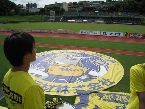 照りつける日差しはもはや殺人的、雲が太陽を覆い隠すことを祈る一日でした。先日の琉球戦と違って雲が多かった為、多少はマシでしたが、やはりこの時期のこの時間は相当にキツイ。 太陽に焼かれるピッチ上の選手達の苦しさは如何ばかりであったか。 ニューウェーブ北九州 2-0 三菱水島FC 本城ファッキンサマーシリーズ第二戦、見事な勝利でした!とはいえ炎天下で大声を出していると頭が朦朧として内容を正確に憶えている自信がありませんが・・・。 前半は水島がよく頑張ってるという印象。ただシュート精度が低い為、失点の恐怖はほとんど感じませんでした。 後半に入った途端に上空の雲が切れ、狂った太陽が容赦ない熱線を浴びせやがる。 急激に上がる気温に比例して急激に消耗してゆく我々。あの時間帯、ピッチ上の選手達もきつかったろう・・・。 とはいえNWの選手達はそれほど運動量が落ちたようには見えませんでした。 特に両サイドからの斬り崩しは序盤から最後まで続けられ、相当なプレッシャーを与えることが出来たのではなかろうか。 一度、右サイドの崩しから真ん中にいた日高選手へパスが通ってシュート、あわやゴールという場面が見られて間もなく、似たような形で日高選手が今度こそゴール。 ほぼ中央、ペナルティエリアのやや外側からズバン!みたいな感じだったと記憶しています。 ゴールを決めた日高選手がバックスタンド側へ走ってきて我々を煽ってくれました。これはテンションが上がった。正直、この時間帯、我々は例外なくバテバテだったのですが、日高選手が「もっとアゲろ」と言わんばかりに何度も両手を上げて煽ってくれたおかげで脳内でドーパミンが大量放出、暑さや疲れが吹き飛びましたね。 先制した時点で水島側のプレーにけだるさが出てきた。この厳しいコンディションで苦しいのは相手も一緒。 それでもNWの選手達はまだ動けている。 さらにトドメを刺すかのように河内選手、藤吉選手、永野選手と闘志を全面に出すタイプの選手を投入。「これはもらった」と確信しました。 包囲して消耗させた敵陣地に特殊部隊を送り込んだような確信。 そして河内選手のゴール。パーフェクツ! 試合内容に関しては評価に個人差はあるでしょうが、僕の中ではズバリ完勝と言ってよいかと思いました。 このクソ暑い中でも皆ホント良く動いてたと思います。ジョージ監督のNWは局面に合わせて選手のポジションがめまぐるしく変化するんですが、ダレずによく走っていましたよ。 そんな中、印象に残った選手を。まぁゴールを決めた選手だけで恐縮ですが。 #8 日高 智樹 選手 去年のバスツアー初参加時にバスの中で、初対面の団長から「どの選手が良いか」という質問を受けたのですが、僕は特に好きな選手というのはなかったものの、咄嗟に「日高」と答えた思い出がありますね。 初めて見た本城での試合、中盤の底を支えながら、味方が攻めあぐねているとスルスルと前へ上がってミドルシュートをぶっ放す。 それも苦し紛れではなく正確に枠内を捉えているので相手DFも警戒してラインを上げざるを得なくなったりとか、いろいろ試合のバランスを考えているなという印象だけでしたが。 「日高」と答えると、それまで僕をガン無視していたブルーノ氏が前の席から身を乗り出して僕の顔を見、団長は「へぇ・・・シブイね・・・。」とふざけるでもなく含みのある一言をつぶやくなど、一瞬、答えを間違えたのかと冷や汗をかいた覚えがあります。 なにせ当時は日高選手がどんな選手かサッパリでしたから。なんとなく印象に残っていただけで。 今は思う。あの時、「日高」と答えたのは正解だったんだな、と。 今日、どうしても生で見たかった日高選手のゴールを初めて見ました。実に爽快な決勝ゴールでありました。 #26 河内 勇太 選手 今日、試合が始まる前にFちゃんママ様と少しお話をしたんですが、その時に河内選手の話もしましたね。 誰もがバテバテになるこの季節にこそ河内のような選手が必要であると。 Fちゃんママ様は河内選手に池元選手(横浜FC)の姿を重ねておられるようでした。 交代出場した直後から期待通りの全力疾走、派手にスッ転んだ時は故障明けなのにトバし過ぎではないかと思った程。 でも安心した。ジェフリザーブズ戦以降、戦線を離脱してから随分経った気がして、河内選手が以前の勢いを失ってはいないかと心配していましたが、杞憂に終わったようです。 四天王総帥曰く「アイツは試合に飢えていたな」と。まさにそんな感じ。 全力疾走、全力突破、変わらぬそのスタイルに頼もしささえ感じられて嬉しかったです。 河内選手がサブにいると知った時、みんなが期待した。河内選手が交代で入った時、みんなの期待は膨らんだ。そしてそれに応えるかのような全力プレー、そしてゴール。盛り上がらないワケがない。 まだまだ成長できる選手ですが、変にお利口さんなFWにならずにこのままのスタイルで突っ走って欲し