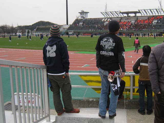 画像は試合後、敗戦に打ちひしがれる我々に、冷や水を浴びせるような言葉を残して立ち去っていく岡山のO氏に、『とっとと帰れよ』と小声でつぶやく腹黒さん。心暖まる交流である。 5月のアウェイ岡山ではこの二人のタイマンが見られそうだ。行かねば。 さて、例年にない盛り下がりを見せた今年の市長杯ですが、付き合いのいい岡山のサポーター軍団のおかげで、個人的には非常に良いリハビリになりました。 たかだかプレシーズンマッチにあれだけの人数を動員出来るというのは、土台が出来ているというか、羨ましいというか、北九州がしていない事を岡山はやっているんだろうなと感心しますね。 いよいよJ2での戦いを控えた我々の為に、スパーリングの相手をしに来てくれた岡山のサポーターの皆さんにまずは感謝。 久しく忘れていた実戦の雰囲気の片鱗を思い出せた事で、ようやくスイッチが入ってきた。我ながらこのスタートダッシュの遅さには恐れ入る。夏休みの宿題はケツに火がつくまで手を付けないタイプなんだから仕方がない。 3月7日の開幕戦には行けませんが、既に相当数の北九野郎どもが横浜へ行く事を決めているようです。頼もしい限り。僕は7日前後は説明会やらなんやらで行橋・苅田辺りでウジウジしてる事でしょう。 とりあえず3月14日の本城開幕、徳島ヴォルティス戦と21日の東京ヴェルディ戦は予定に組み込んでおいた。勝てばお祭り騒ぎになるのでココは外せんな。 ざっとスケジュールを見ても確実に勝てそうな相手が皆無なのがまたいいね。 北九州の選手達がJ2の舞台でどんな活躍を見せてくれるか、一つのゴール、一つの勝利の価値がこの上なく高いシーズンになって、僕らは今までとは違う喜びや手応えを感じる事だろう。 無論、それ以前にどうしようもない無力感や敗北感を味わうかも知れないが・・・それもまた折込済みのJ2の旅である。 いやー、それにしてもこのブログでもJリーグのチームの名前がボンボン出てくるようになって来ました。ソニー仙台とかアルテ高崎とか連呼してた頃が遠い昔のようですわ。正直、HondaやSAGAWA、TDK辺りにはおもっきり貸しがあるのでそのうち取り返しに行きたいなぁ。 |