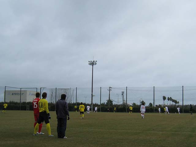 「嵐の翌日、小雨を伴った冷たい風が吹く平日の昼11時に、北九州の辺境とも言われる新門司での練習試合を観に行くようなヤツは、絶対マトモな仕事をしてないよね。」 と、言われるのを覚悟で行って来ました新門司。夜勤明け余裕でした。そんでもってただいま爆睡から目覚めて候。 いや~寒かったね~。仕事疲れの体に小雨交じりの寒風がコタエたわい。 ああ、新門司の自販機にホットコーヒーはないのか・・・。 練習試合 ニューウェーブ北九州 2-0 沖縄かりゆし まずは沖縄かりゆしについて個人的な雑感をちょっぴり。 前回のヴォルカ鹿児島に続いて思い出の九州リーグシリーズ第二弾(勝手に命名)、沖縄かりゆしとの練習試合。かりゆしと言えば僕の中では村田大を精神的支柱とした熱血チームという印象があったが、もう退団してたんだね。 村田はグダグダになりかけた沖縄かりゆしを纏め上げて、下馬評を覆すチームに変えた張本人だったと僕は思っていた。試合に出なくてもベンチでチームメイトを鼓舞するだけで足が止まりかけた選手達を走らせた、そんな印象。真面目で優しく熱い言葉は、かりゆしの選手やサポーター達をどれほど勇気づけただろうか。 彼らは九州リーグの毒蛇、ハブのようなチームとして、下馬評を覆し格上と言われるチームを次々と毒牙にかけてきたが、フィールドプレイヤーは牙であり、強者を打ち倒したその猛毒の正体は村田であり中川だったと。 そんな熱血野郎達が抜けてどのように変貌したのだろうかと多少の興味もあったが、少し洗練された印象を受けた。 ちゅーか見覚えのあるヤツがいる。去年、ファジアーノ岡山にいた関隆倫が10番を付けている。 沖縄かりゆしはもう明らかに関隆倫を中心としたチームだった。もし、村田達が残した『毒蛇』としての伝統を受け継いでいるなら、かりゆしは地域決勝でもヤバイ存在になるだろう。 同組には天皇杯で名を挙げた松本山雅がいて、最有力と思われるが、個人的には下馬評をひっくり返して九州リーグの毒蛇ぶりの健在を見せてもらいたいと思っている。 長くなった。無駄に。 前半は主にスタメン組中心のチーム編成。中盤の制圧力が目に見えて違う。 NW北九州の中盤というのは今のJFLでもかなりのもんだと思っている。中でもやっぱり佐野選手が目立つ。パスワーク素晴らしい・・・美しい。 ただ、NWの試合を何試合か観た事がある人なら映像が浮かんでくるかもしれないが、そこまで押し込んでおきながら何故・・・、という場面が繰り返されたりする。 桑原選手が『シュートで終わろう!』と声を掛けると、僕も釣られてウンウンと頷いてしまった。 それから間もなく当の桑原選手がPAちょい手前辺りから豪快に蹴り込んで先制。有言実行。凄いヤツだ。 ちゅーか、練習試合とはいえ桑原選手のゴールという貴重なものを観てしまった。レアだぜ。 全体的に優勢、攻め込まれるシーンはほとんどなし。2,3回はあったかも知れん。それ以上あったかも知れないが特に危険と思えた印象がないんだから仕方ないね。 個人的にはCKや自陣PA近辺からのFKなど、セットプレーをガンガン受けてもらいたかったのだが、中盤で制圧しちゃうもんで、余りなかったのは残念。悪い事じゃないんだけど折角だからね。 多分、TDK戦の敗戦のショックで僕が心配症になっているだけかも知れない。 そんな感じの前半。 HT中、聞くつもりはなかったけど、新門司という場所柄、審判さん達の会話を聞いてしまった。デビルイヤーは地獄耳、まさにBRIGADEは地獄耳である。 といっても目の前だったんで・・・。 『11番(宮川)と5番(かりゆし)の押し合いがねぇ・・・』と聞こえる。要約するとこうだ。 宮川は競り合う時に腕で相手DFを押しのけようとする、だから相手DFは宮川の腕を掴んでしまう。宮川のプレーは悪質ではないが判断が難しい、と言う感じ。 宮川が目を付けられていると感じたので『そんなことないです、宮川は本当は心の優しい子なんです』と耳打ちしようかと思ったが、審判団の間で『新門司にはヤバイ奴がいる』と噂が立つのも困るので自重した。 宮川の腕っちゅーか、相手選手を押しのけるのってフツーな感じがするが。マグロで突っ込めってのかい。まぁ宮川選手は腕力もあるんだろう。ガチムチプレーが目に付くのは止むを得まい。 後半はごっそりメンバーを入れ替え、リザーブ組中心の編成。と、書くとなんだか後ろ向きな感じがするので、あえて『九州チャレンジャーズリーグで勝ちまくってるメンバー中心の編成』と書いてみる。うむ、我ながら聞こえがよい。 ただ、後半から中盤の制圧力が落ちた。かりゆしに組み立てを許している。『中盤の制圧力ってなんだよ』とツッコまれそうなので補足すると、要は判断の速さじゃないかと。 ボールを受けた時に生じるプレーの選択肢からのチョイス、その速さ。個人の差はおそらくは1,2秒の差だとは思うのだが、プレーを重ねる度にその差が大きく響いている気がす