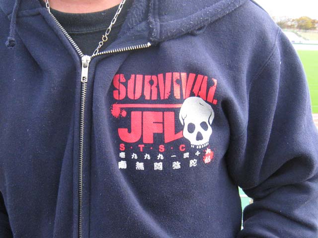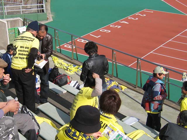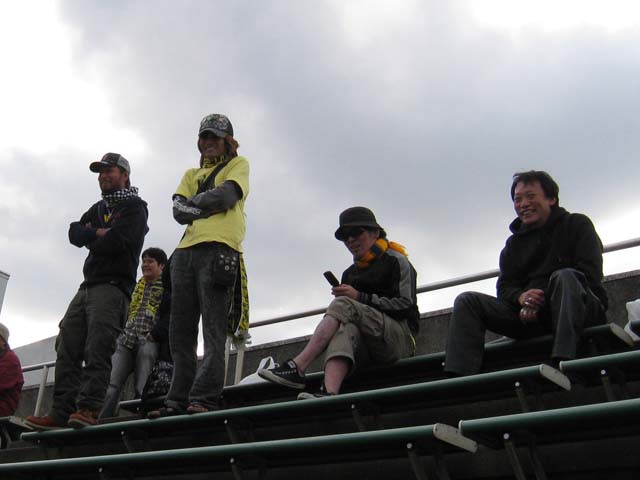 画像は愛知のヨゴレ、刈在さんのパーカーにあったサバイバルJFLのロゴ。個人的にドクロマークが好きな事もあって、ドクロマークとJFLの組み合わせがカッコ良かったので撮らせて頂いた。 まぁ僕らの場合はブレイクスルーJFLなんだけども、刈谷のサポーターさんにサバイバルJFLとはちょっと生々しい。 JFLに対する気持ちは、北九州が無事にJFLを切り抜けられたオフシーズンにでも書こうと思う。この2年間の濃ゆい思い出は小ネタにするには大きすぎる。無論、来年もやることになったら書かん。 「これも撮って」というので撮影したが、これって撮る必要あっただろうか。 まぁ、彼にとっては必要なのだろう。 先日の琉球戦では、久し振りに会う感じの人が多かった。本城での試合自体が少し間があったからかも知れないが。 ビキニパンツ野郎、ラジコン野郎等、ロクでもないホーリーネームを付けられていた刈在さんも、アゴひげをたらふく蓄えて怪しい風貌をパワーアップさせていた。彼がどこを目指しているのか全く判らない。彼が持ってくる『なごやん』だけが唯一の救いである。 試合後、メガホンで『FC刈谷はJリーグを目指しません!』などと演説を始めた。北九サポーターから『どないせぇ言うねん』的な微妙な拍手が沸く。 今まで我々に演説を垂れたのはホンダロックのヨゴレ総統ぐらいだったのだが、かなり悪影響を受けているようだ。『友達は選んだ方がいいですよ』とご忠告申し上げようかと思ったが、余計なお世話だと思い自重した。 風邪をこじらせて入院していたという翔太くんも無事に戦線復帰。聞けばお姉ちゃんもインフルでダウンしていたとか。T家の衛生管理はどうなっとるんすか。 復帰早々にパパを襲撃中の翔太くん。元気そうだ。 メインスタンドに移ってからポジションが少し変わった。今まで前線にいた僕、ナカニシさん、梅太郎さんなどの濃い目の常連ヨゴレは最後方に陣取り、皆様を暖かく包み込もうという算段である。 ヨゴレとヨゴレで挟み込み、皆様もヨゴレにしてしまおうというオセロ戦法である。ゴールが決まった瞬間には後方突撃隊長(?)の僕が飛び込んでゆくので後ろにも要注意だ。あのエリアに安全な場所など存在しない。 2007年末に結成された伝説のヨゴレ四天王に次ぐ、新四天王の誕生かと思わせる濃度の高い写真。このうちの三人が浜川へ乗り込む予定。 思えば随分と北九仲間が増えた。いきなり溶け込む訳じゃない。僕だって半年ぐらいかかった。OGYさんの『誰この人』的な、つぶらな視線に耐えてようやく馴染んできた。 今をときめく西ヤン達ですら、最初は僕から『何このバカップル』的な眼差しを受けていたのだから後は推して知るべし。 NW北九州というチームを通じて、少しずつ拡がってきた輪、それは爆発的な拡大ではなくジワジワと培ってきたからこそ強固なのだ。例え僕がそこにいなくても、彼らはそこにいるだろうと信じる事が出来る。なぜなら知り合う前から彼らはそこにいたんだから。 入りにくさは判る。入ったとしても浮いているのではないかという不安も判る。僕もそうだったから。でもちゃんと見ている。増えてゆく仲間を。拡がる輪を。 さて、次のアルテ高崎戦は、22日の他チームの結果如何に拠っての4位以内確定ばかりに目を奪われがちである。 追い詰められているのはガイナーレ鳥取であって、北九州は優位に立っていると言う。果たしてそうだろうか。 それなら、今感じているこの『ぼんやりした不安』は一体何なのか。 最終戦に待ち受ける相手は、いよいよ戸塚の魔法が浸透し始めた町田ゼルビアであり、22日に競争の対象であるガイナーレ鳥取、ソニー仙台が勝利した場合、我々にとっての高崎戦は今まで以上に重要性を帯び、ぼんやりした不安ははっきりとした不安に変わってゆくだろう。 早い話が、22日の他チームの結果がどうなろうとも、どっちへ転ぼうが高崎戦はニューウェーブ北九州というチームの帰趨を決める重要な一戦であるという事だ。 J参入の4位以内が確定するかも知れないなどと、花摘み乙女のような好奇心でノコノコ高崎へ出向いた場合、凶暴な野犬の群れに八つ裂きにされてしまうだろう。 高崎戦は全てを掛ける試合である。 追い詰められてるわけじゃないが、優位に立っているわけでもない。 結局、勝利以外に道が拓かれることはない。 四位以内が確定するかも知れないという希望の周囲に漂う、ぼんやりした不安。そいつを振り払って希望を掴め。次への道を拓け。選ばれたチームだけが味わえるこのプレッシャーに、今こそ一丸となって打ち勝つ時だ。 調子が良かろうが悪かろうが、やらなきゃいけない時ってのは、まさに「今」なんだと思う。 *一番下の画像は入院していたという『オトン、サッカー場へ行こう』の『オトン』。取材受けまくり。 『すっかり有名になってしまいましたね』と声を掛けると、顔を真っ赤にして照れながら、『ありがた迷惑だ』と笑った。賭けてもい