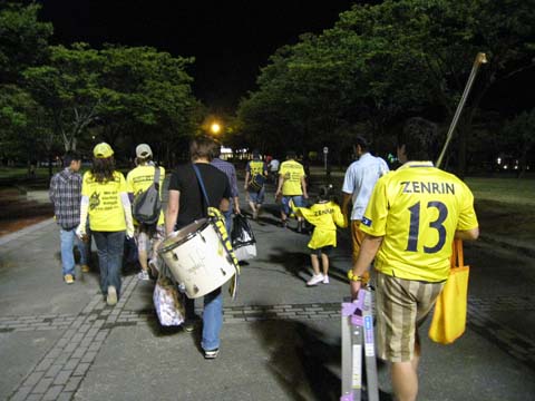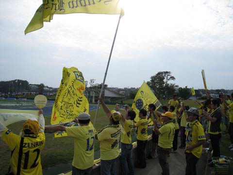 特に何かあった訳でもなく、一言で言うとメンドっちいだけだったんですが、更新が止まっていた事に対して色んな方々から心配する声を掛けて頂きました。本当に僕は幸せ者であります。 無論、やらなきゃいかん事だらけで、不安や焦燥感は払拭しきれないでいますが、それでも自分は恵まれているのだと、そう思うわけであります。 さて、北九州地方は朝から強い雨、これはハードな観戦になりそうだとずぶ濡れ上等の服を用意しておりましたが、僕の身を案じて直前に電話を掛けてこられたツンデレ団長曰く、『心配しなくても雨は上がる、ウチには晴れ男が居る』とのこと。 いやーさすがに今日ばかりは無理だろうと窓の外の勢いある雨を見ながら思ったわけですが、本陸に近づいた頃にはもう青空が出てましたね。冗談抜きでモンスター級の晴れ男がいるようです。 ’09JFL後期第9節 ニューウェーブ北九州 1-0 MIOびわこ草津 ナイトゲームと言うよりトワイライトゲームみたいな、それでも初秋の風を受けて過ごしやすい空気の中で、苦手としていた相手に見事に激勝。なかなか緊張感のある良い試合でしたね。 北九が何度もチャンスを作りながら決めきれず、びわこが高速カウンターで北九ゴールを脅かす、という今まで見てきた対びわこ戦と似たような嫌な感じではありました。 びわこは去年よりも強くなっているような気はするものの、『不気味さ』という意味では低下しているような印象を受けた。良くも悪くも普通のチームになっているのだろうか。 後半立ち上がりのびわこの猛襲をいなして北九州がびわこゴールに襲い掛かる。聞こえは悪いかも知れないが放り込みカウンターの応酬といった印象を受ける。びわこが前掛かりになっているんだろうか、いつもよりラインの裏を取り易いようにも見えた。 試合前に「最近調子を上げている」と聞いていた中嶋選手がゴールを奪ったのは、後半始まってそれほど経っていなかった。北九の時間の中での先制点だった。 相手GKの前でバウンドするような、低く叩きつける様なシュートがびわこゴールに突き刺さった。以前、中嶋選手のゴールはなぜかカッコよく見える的な事を書いたように思うが、今回のシュートにしろ時折見せるループにしろ、相手GKが取りにくいボールを心掛けているのだろう。それが慎重さを生んでしまう面もあるが、基本的に高いシュートテクニックの持ち主なのだ。 残り時間を思えば喜んでばかりもいられなかったが、ここでゴールを奪えたのは大きい。明らかに試合のペースを握った。ここで外していれば攻めあぐねる展開に陥っていたかも知れない。 北九州の突撃にギリギリのプレーで止めるびわこに、そのうちレッドカードが出るのではないかという淡い期待が現実のものとなったが、これでびわこはアレコレ考える事無く放り込みに専念してくるという予感と、MIOびわこ草津が持つ不気味さが相まって、緊張感は決して途切れる事はなかった。 無論、守ってばかりではなく、追加点を奪いにいく猛襲も見せたがそのまま試合終了。ついに最後までびわこに見せ場を与えなかった。 少し話が逸れるが、後半、個人的にちょっと癒されたシーンがあった。北九州が波状攻撃を仕掛けて次々とシュートを打ち込むものの、結果的にゴールは奪えなかったあの時、北九州サポーターからは溜め息ではなく拍手が響いた。「いい!それでいい!」的な声援。今の僕が一番言われたい言葉なのかも知れない。結果的には失敗に終わった波状攻撃に参加した選手達も、自信を持って次のプレーを続けられたはずだ。 僕の中にあった『北九州は走り負けする』というイメージはいつのまにか消えている。いまや走り続けるチームである。まぁ元々そのポテンシャルはあったんだけども。 ということで今日印象に残った選手。 #17 中嶋雄大 選手 どんな体勢からでもボールを前に押し出せるボディバランスと抜群のシュートテクニックで九州リーグの連勝街道を支え、若きエースと呼ばれた男。色々と苦い砂を噛まされたMIOびわこ草津に鉄槌を下したのは、雄大だった。今日、試合を通して強い雄大が戻ってきやがったと感心しきりだった。 #20 関 光博 選手 僕の中では佐野選手のシャドウ的なイメージだが、非常に頼もしく感じている。シーズン前にケガで出遅れていたが、当時、誰よりも早く本陸に来て、そして最後に帰っていく関選手に、その気持ちが報われて欲しいと思っていたのだが、今や外せない主力である。 あとはまぁ、新加入の大島選手であるが、個人的には交代した宮川選手ほどの存在感は感じなかったものの、ブルーノ・ソメザイル氏曰く、『体の芯が強い』とのこと。 攻撃性が感じられる選手なのでチームにフィットしてくれば恐ろしいカードになるかも知れん。 あ、さて、親兄弟・親しい友人含めて僕の周りには9月生まれが多いのだが、NWの横手社長も明日が誕生日とのこと。 僕は個人的には社長の事はよく知らないが、『人好